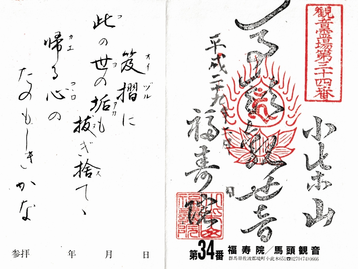 【写真 上(左)】 第34番.小柴山 宝存寺 福寿院